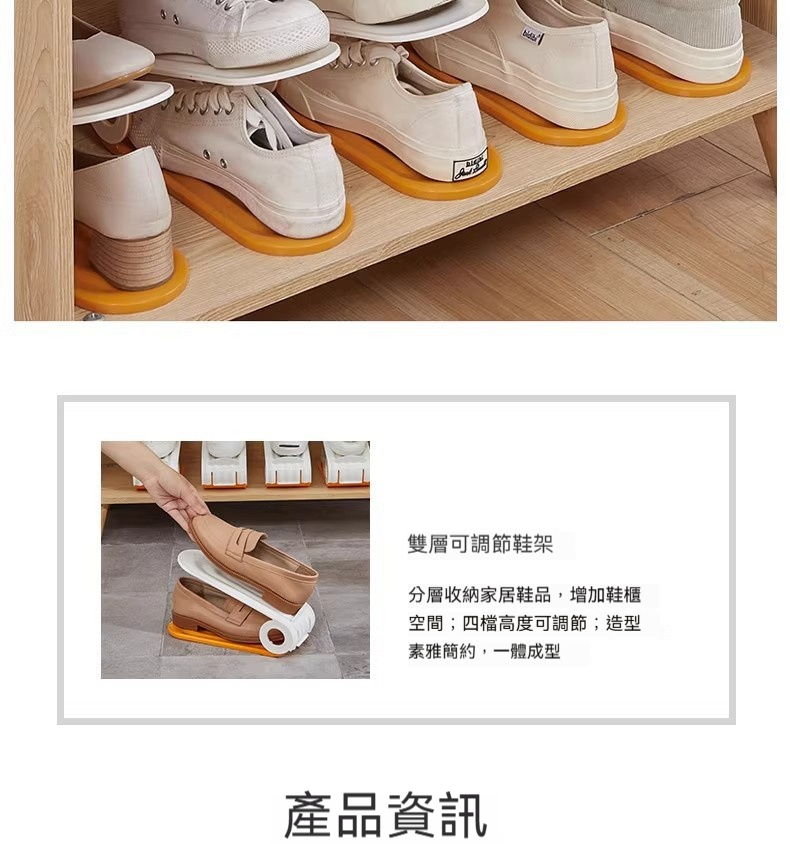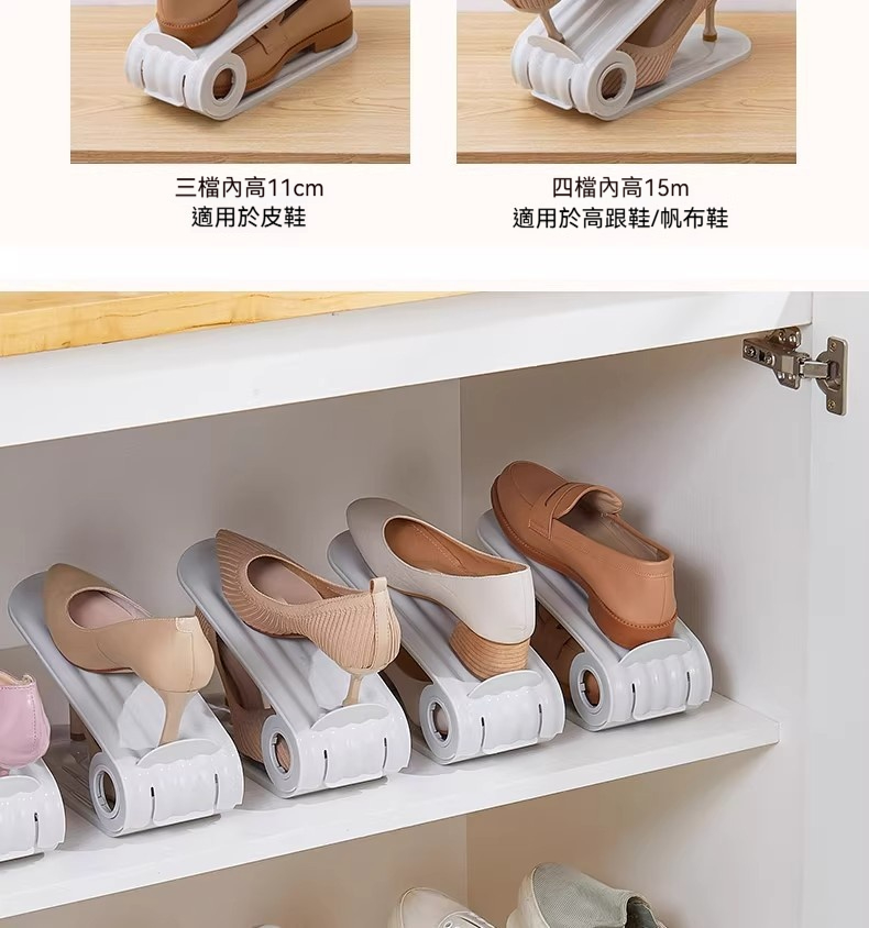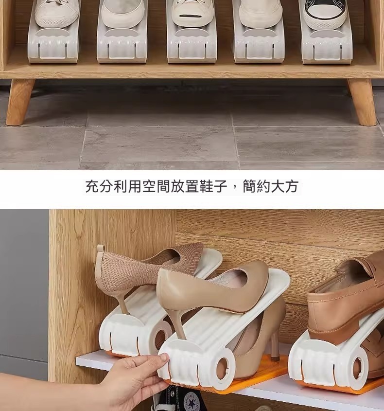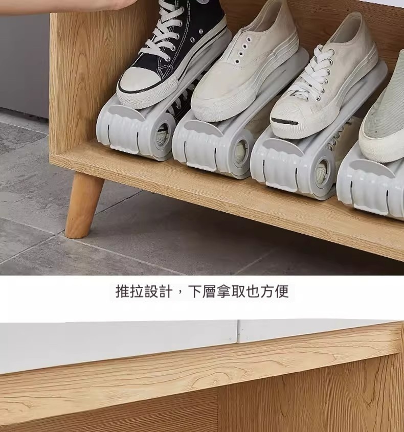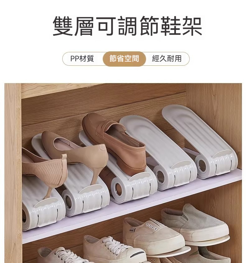 雙層可調節鞋架|鞋櫃空間放大2倍✨ 四檔高度自由調,高跟鞋、球鞋、拖鞋都能放! PP材質耐用防潮,推拉設計拿取超方便!