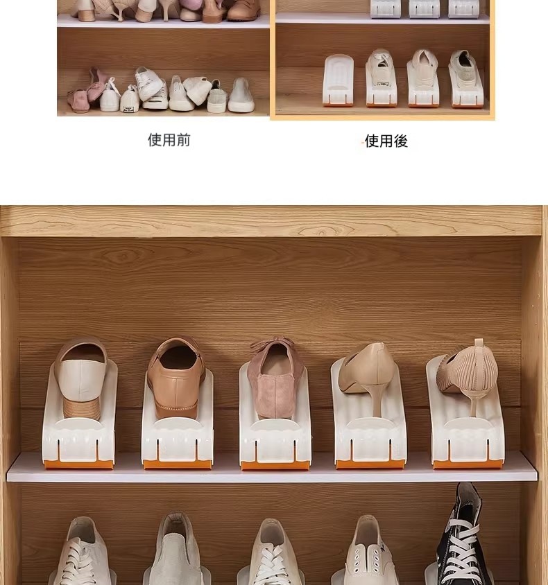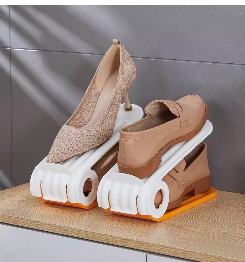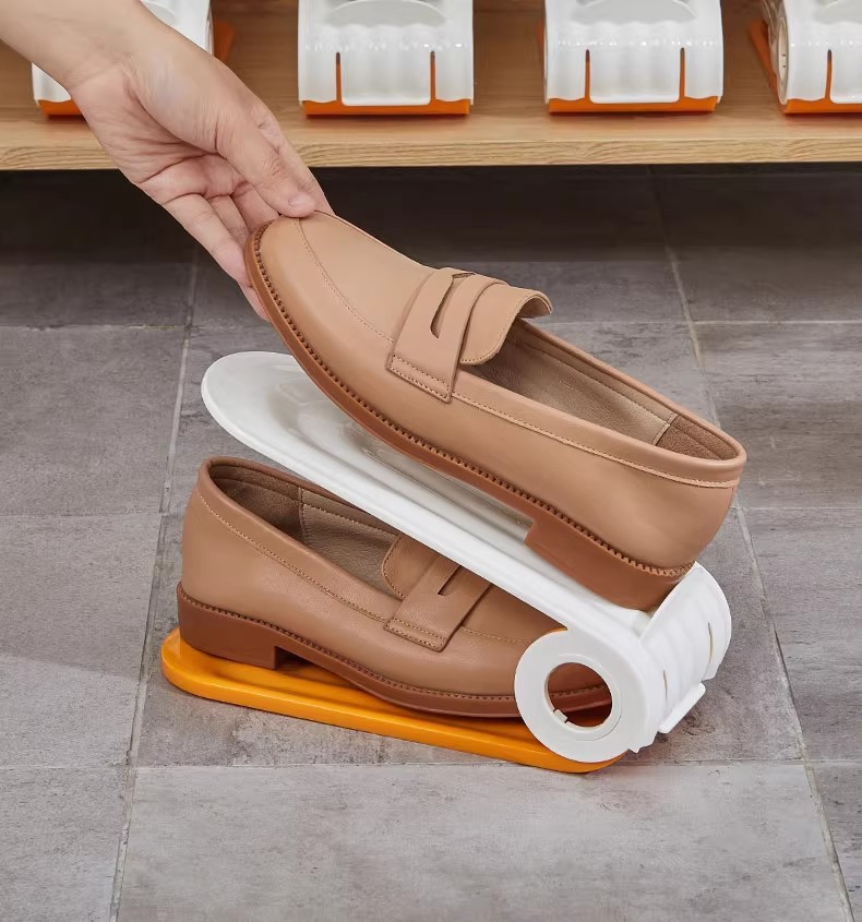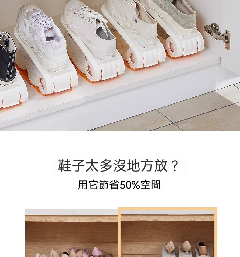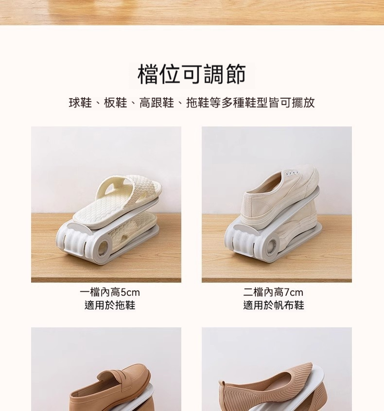 雙層可調節鞋架|鞋櫃空間放大2倍✨ 四檔高度自由調,高跟鞋、球鞋、拖鞋都能放! PP材質耐用防潮,推拉設計拿取超方便!