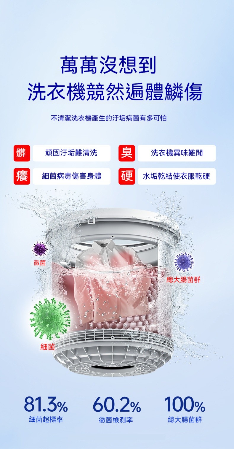 洗衣機槽清潔劑|99.9%除菌率+100%除蟎✨ 高倍活氧配方,強力去污除臭! 定期清潔洗衣機,衣服才能真正洗乾淨!