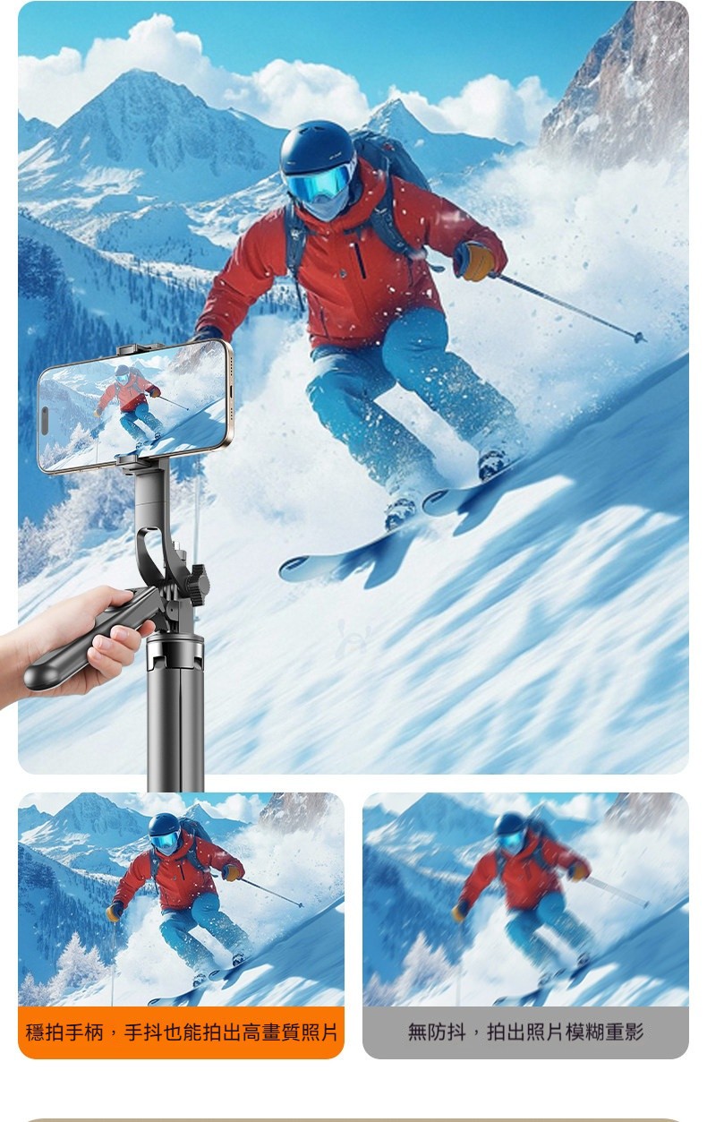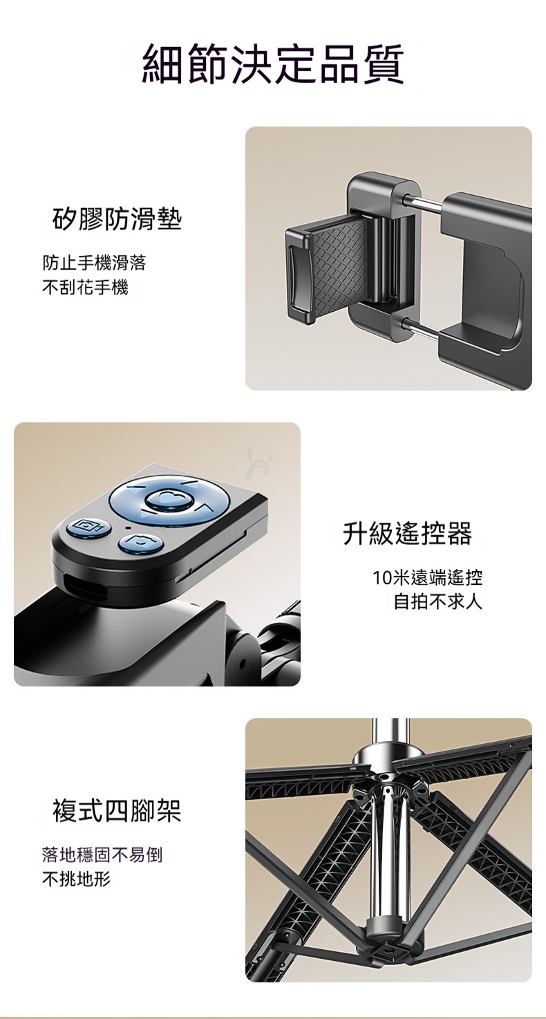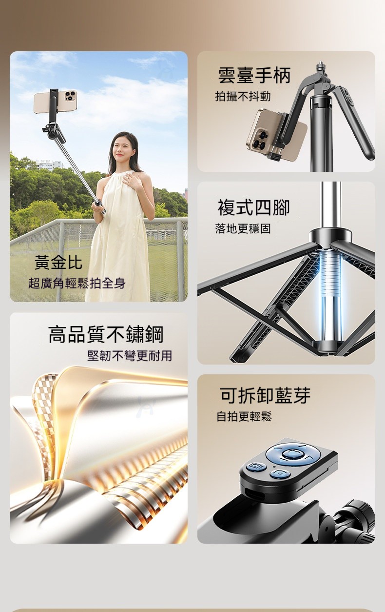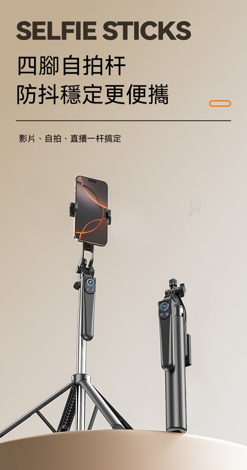 四軸防抖自拍杆|1.7米超廣角+20米遙控✨ 首創複式四腳架,穩如泰山不晃動! 直播、拍片、自拍、追劇一支搞定!