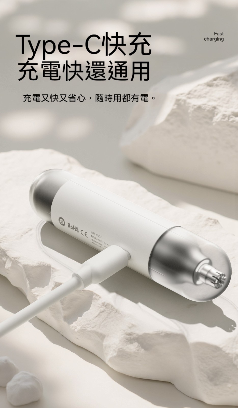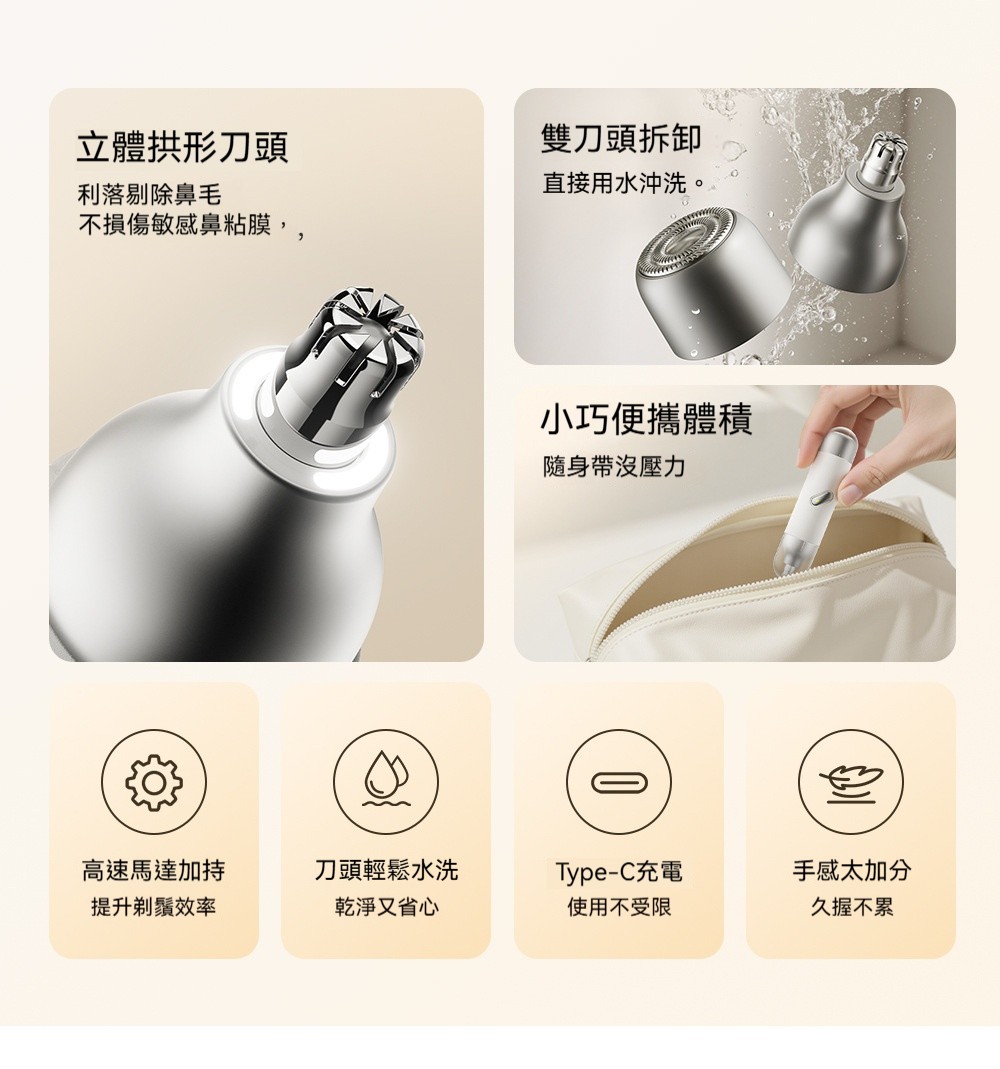 電動鼻毛修剪器|剃鬚+修鼻毛二合一⚡ 立體拱形刀頭,利落剔除不傷黏膜! 刀頭自帶照明燈+Type-C快充,隨身攜帶超方便!